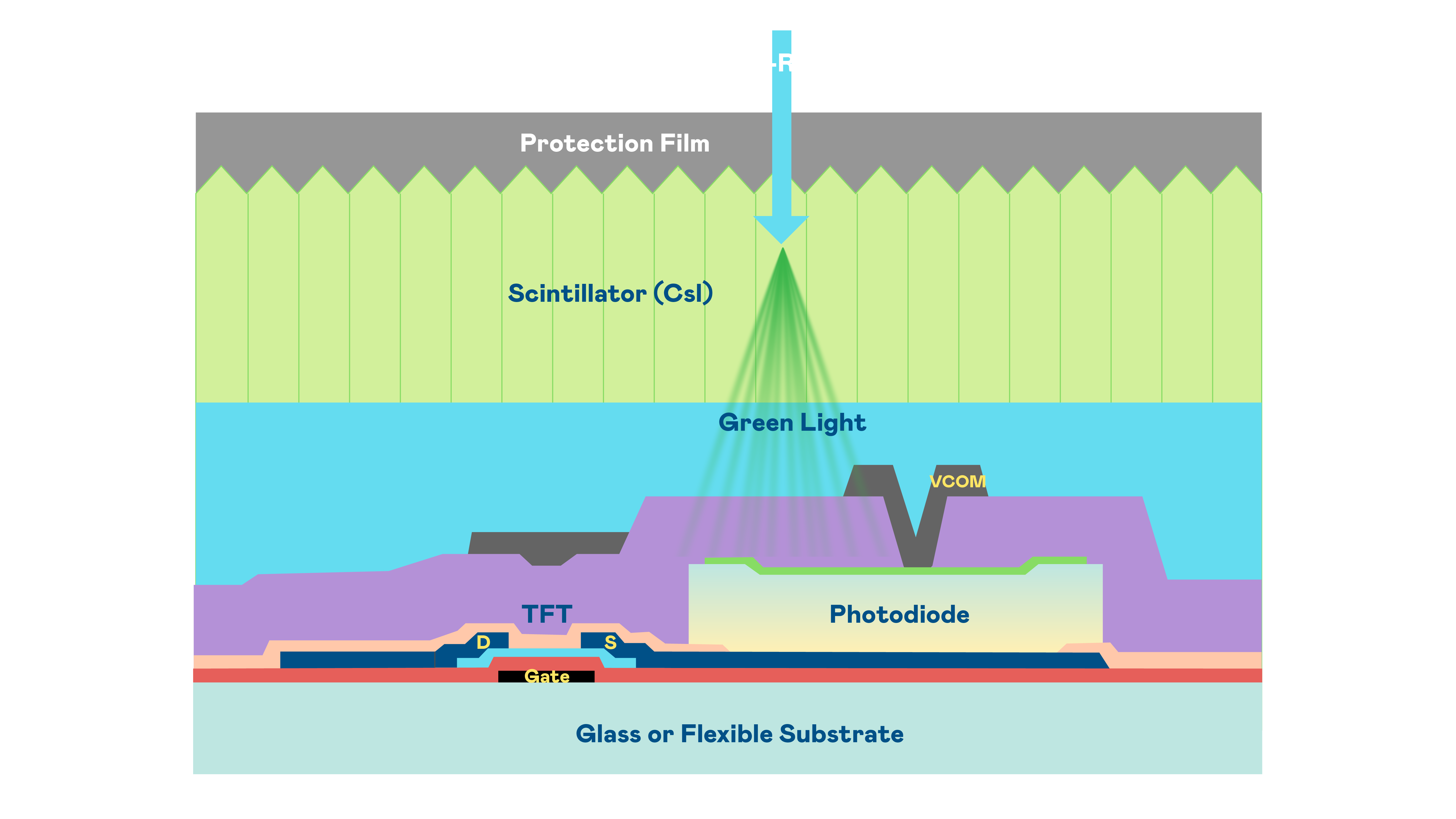 贝斯特的X光影像感測陣列使用薄膜電晶體 (TFT) 作為每個像素的讀取開關,搭配光電二極體(Photodiode)的光電轉換元件,用以感測X光影像訊號。